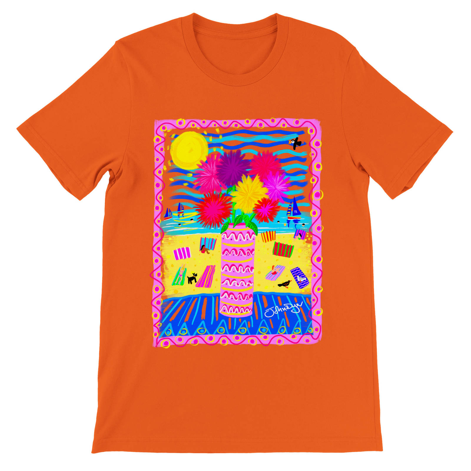 We are steadily adding new content and designs to our range of shirts, so keep checking back for updates. Our range includes unique, colourful, and contemporary designs from our artists, so whether you're looking for a new tee to take on your holiday, want to showcase and support contemporary art, or want to add a splash of colour to your wardrobe, our arty shirts should be perfect for you. They are all offered at an affordable price.