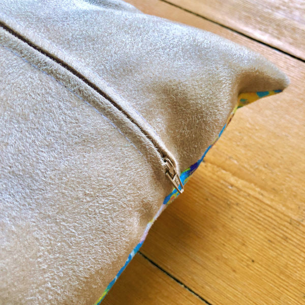 • Faux suede cushions have a soft, luxurious feel and a warm stone-coloured back in the UK and a white back in the USA