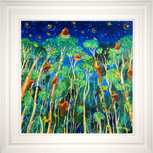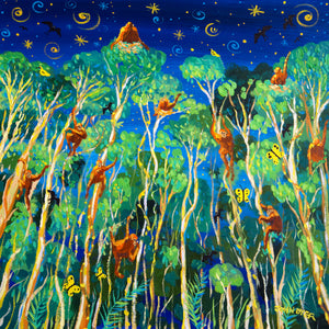 "The beguiling orangutans in Borneo make a fresh nest for themselves each night so they can sleep safely under the stars in the rainforest canopy. Living with the orangutans in the forests of Borneo was a remarkable and emotional experience and in many ways, this painting captures the essence of their very human-like, gentle and fragile existence." John Dyer