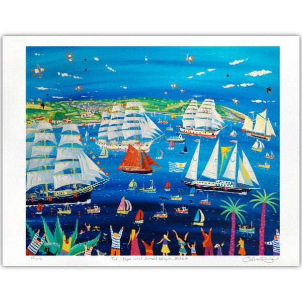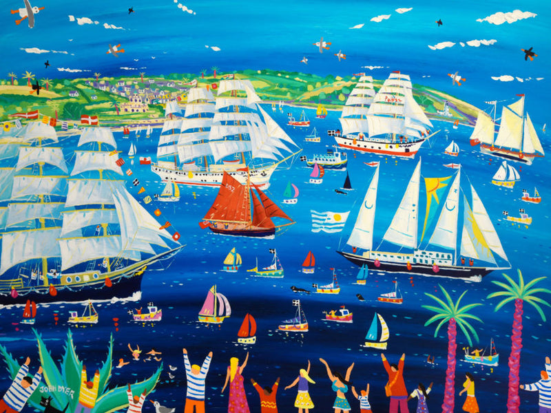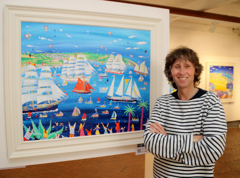 "I'm thrilled to have been asked to be the official artist in residence for the Falmouth Tall Ships once more, after my previous Tall Ships residencies in 1998, 2008 and 2014. This year's Tall Ships are truly magnificent, and I have been inspired to create a painting that captures the awe-inspiring scale of these majestic vessels as they sail out into the open sea, past Black Rock, St Mawes Castle and St Anthony lighthouse. From the gorgeous translucent light of the sails to the excitement of the people standing on the shore, my painting and official prints celebrate and portray the essence of this historic moment for generations to come."