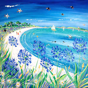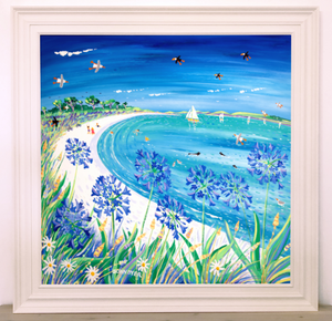 Original Painting by John Dyer. Blue Agapanthus and Sparkling Sand, Pentle Bay, Tresco
