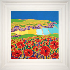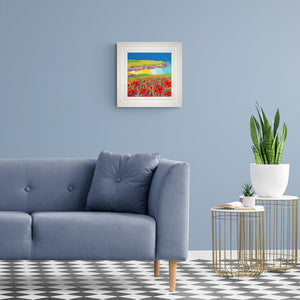 This exquisite 12x12 inch oil on canvas painting of Polly Joke beach in Cornwall is the work of renowned Cornish colourist artist, Joanne Short. The painting features a field of red poppies and the rugged cliffs of North Cornwall. The incoming tide and golden sands capture the natural essence of the Cornish landscape, while the blue sky sets off the vivid colours in the painting perfectly. A wonderful addition to any home or office art collection.