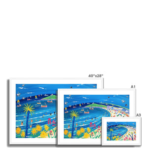John Dyer Framed Open Edition Cornish Art Print. 'Tropical Days at Porthmeor Beach, St Ives'. Cornwall Art Gallery