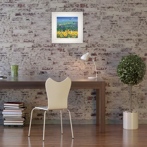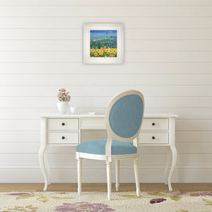 The sheer fun and colour of exploring the amazing landscape of Provence is captured brilliantly in this delightful new canvas by artist John Dyer. The Provençal village of Ménerbes of 'A Year in Provence' fame can be seen in the background. The painting is full of summer energy and sunflowers.