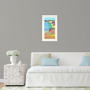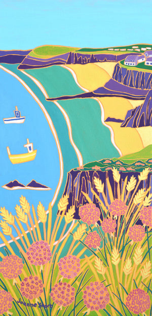 The painting has a real sense of warmth from the late summer sunshine in Cornwall and the wonderful format combines with Joanne's unique way of painting and describing the landscape to form a sublime painting of the Cornish coast.
