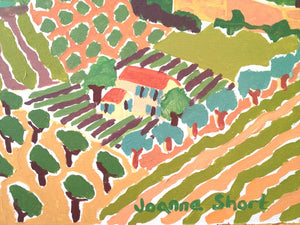Original Painting by Joanne Short. Patchwork Fields, Faucon. Provence, France.