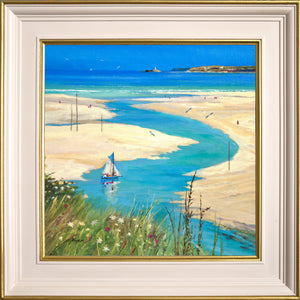 'High Summer, Hayle Sands', 14x14 inches oil on canvas. Painting by Cornish Artist Ted Dyer. Cornish Art from our Cornwall Art Gallery