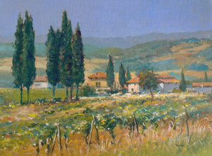 'Tuscan Farm in the Warmth of the Day, Italy', 12x16 inches original art oil on canvas. Paintings of Italy by Artist Ted Dyer. Cornwall Art Gallery