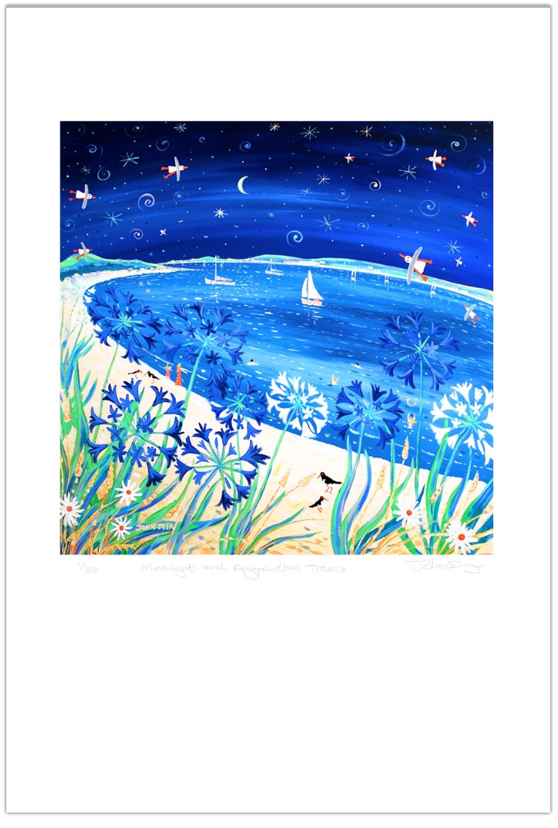John Dyer 'Dancing in the Moonlight, Fowey, Cornwall'. Limited Edition Print by Cornish Artist John Dyer