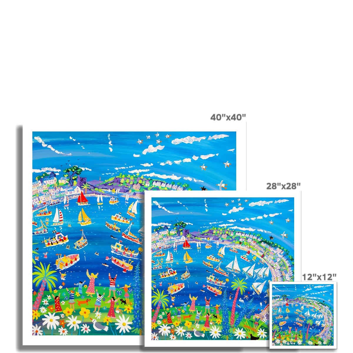 Step into a carnival of colour and celebration with John Dyer’s ‘Fowey Fun’ – a joyful tribute to the vibrant energy of Fowey on a festive summer’s day. This dazzling open edition art print is alive with detail, capturing the excitement of a harbour regatta with boats, bunting, and the unmistakable rhythm of Cornish life.