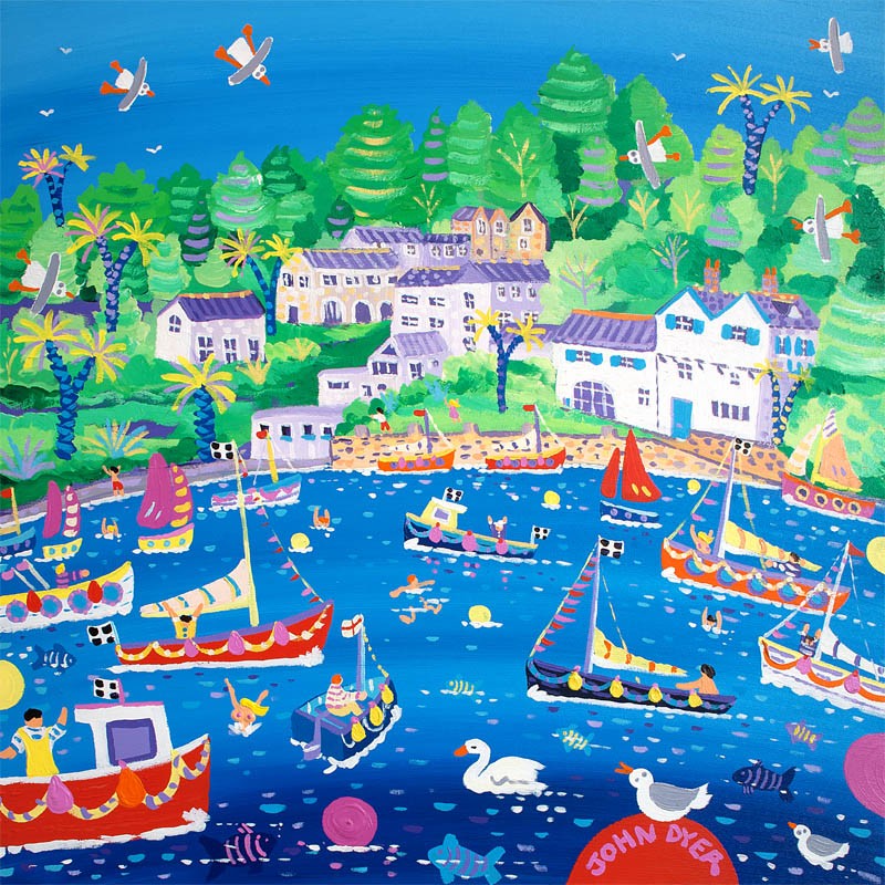 John Dyer 'Racing Down the River, Fowey'. Limited Edition Print by Cornish Artist John Dyer