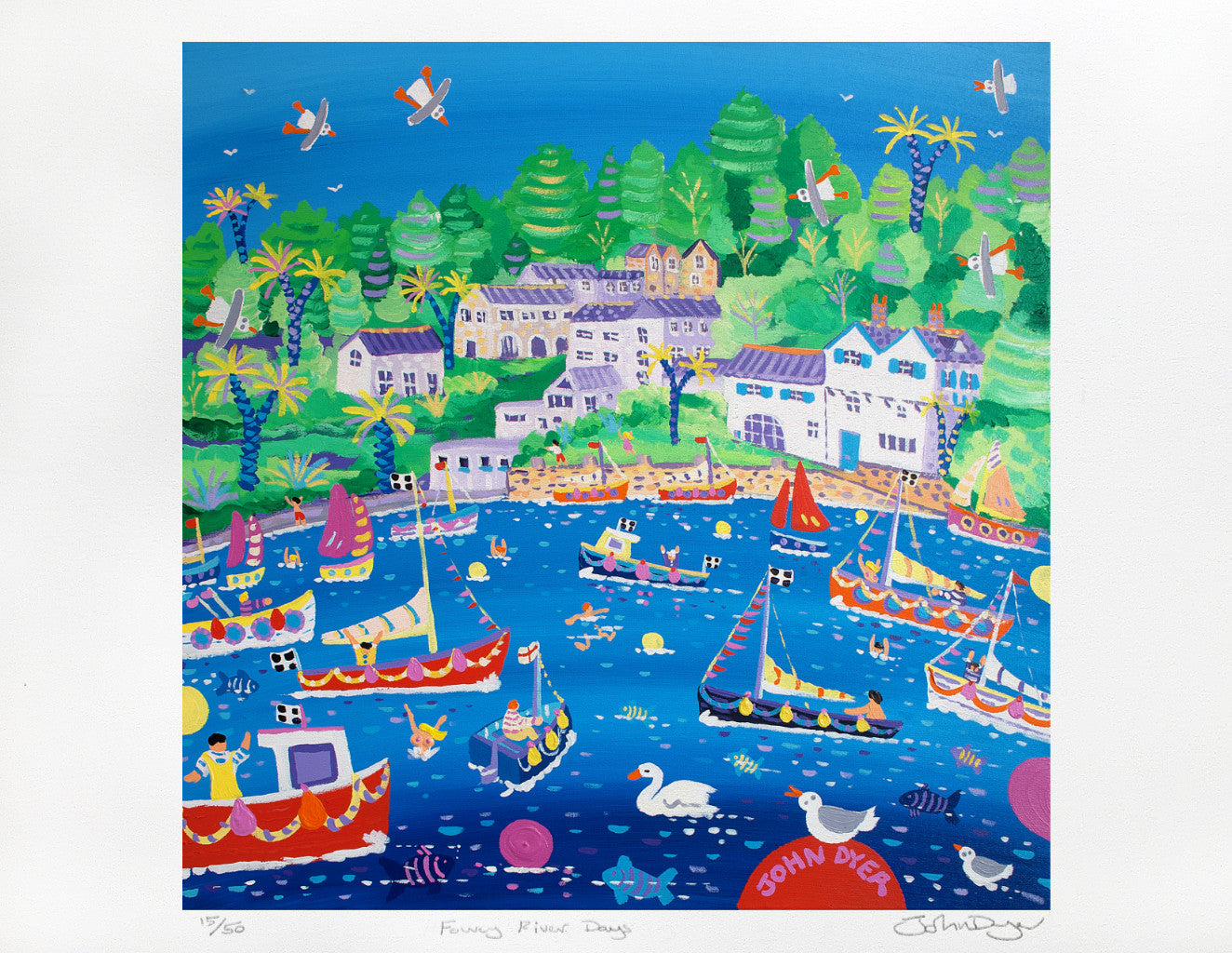 John Dyer Limited Edition Print by Cornish Artist John Dyer. Fowey River Days. Cornwall