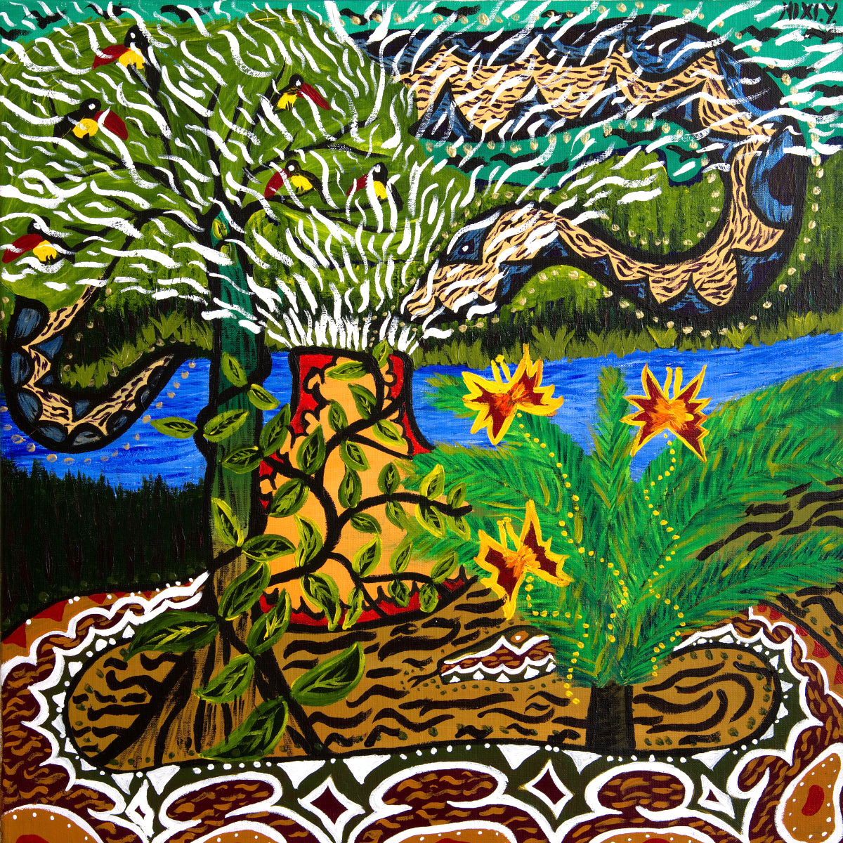 John Dyer Painting inspired by the Yawanawá Tribe. Amazon Rainforest. Original Painting by John Dyer. Kênê - At one with Nature.