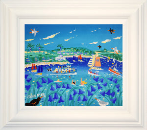 'Sailing to St Mawes', 10x12 inches acrylic on canvas. Bluebell Painting of Cornwall. Cornish Artist John Dyer. Cornwall Art Gallery