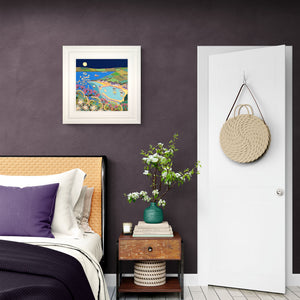Joanne Short's 'Full Moon over Mylor Harbour' is a beautiful oil painting that captures the stunning view of the full moon over the harbour. The intricate detail and vibrant colours of the wildflowers in the foreground are simply breathtaking, and the reflections in the water create a truly magical scene. This painting is sure to bring a touch of Cornish charm to any home and would make a perfect addition to any art collection.