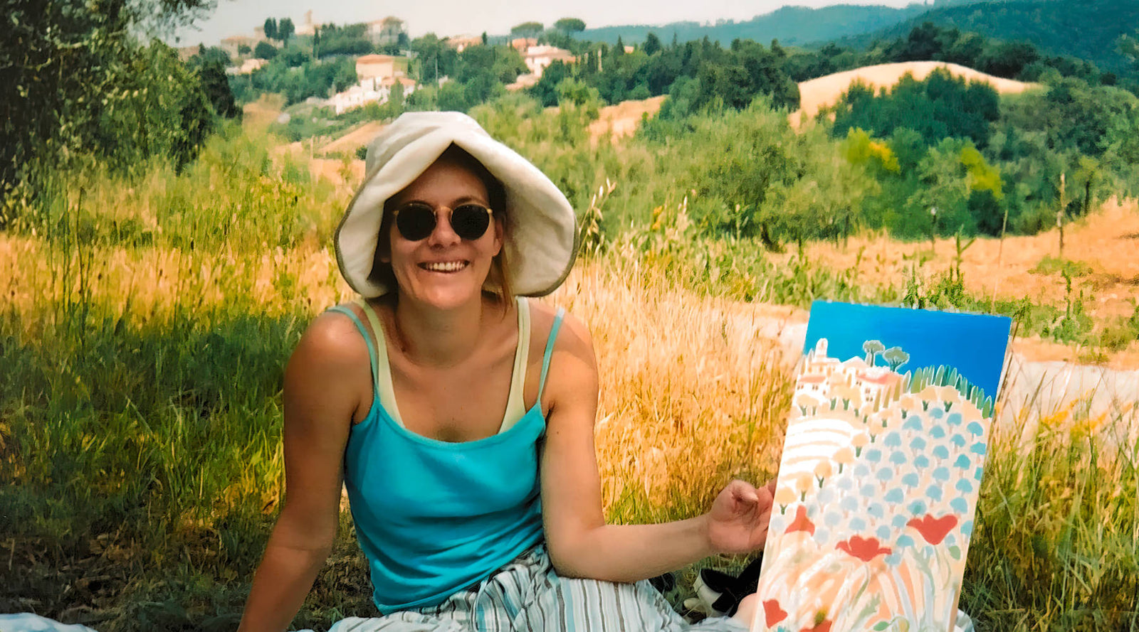 Photo of artist Joanne Short, painting the Italian landscape, 2003