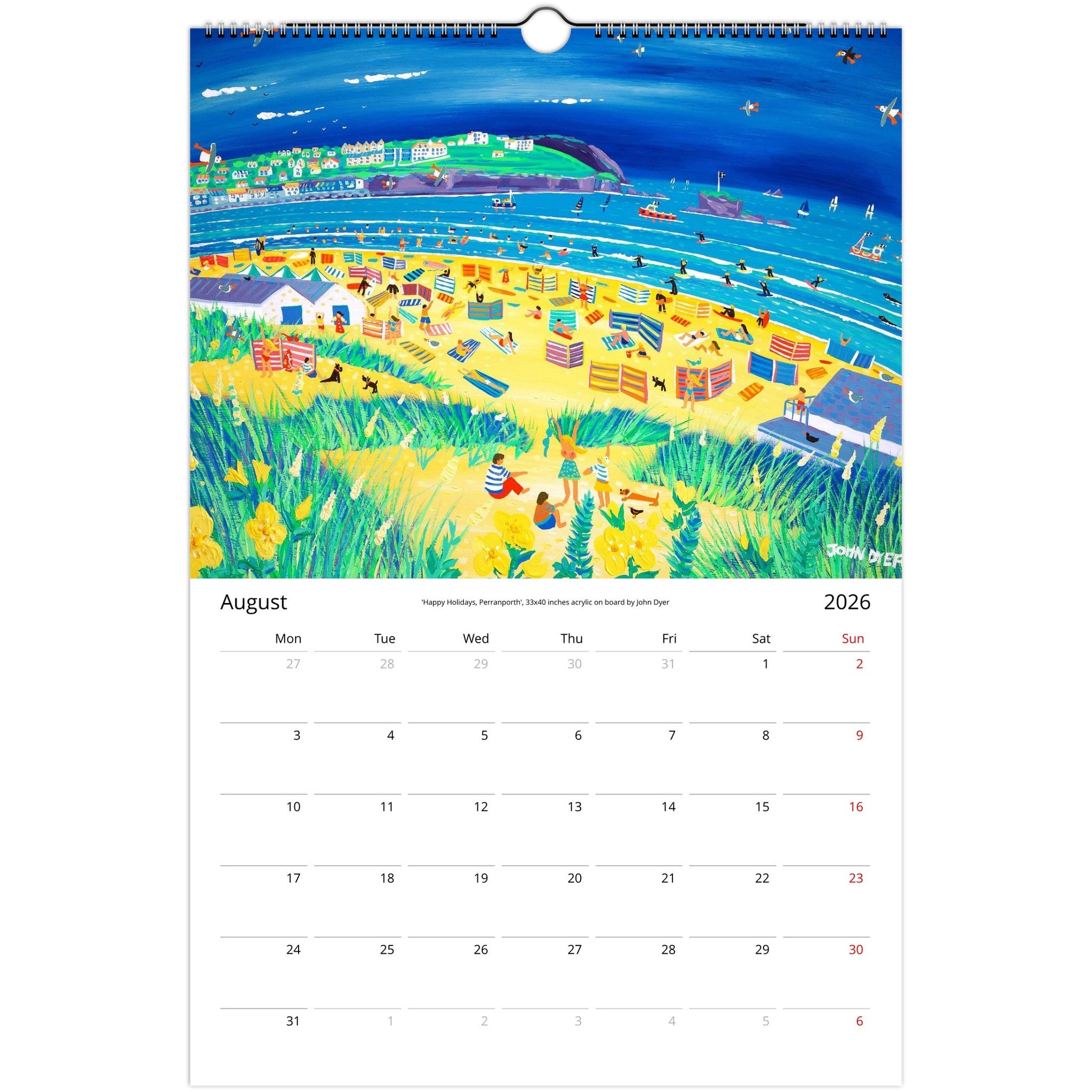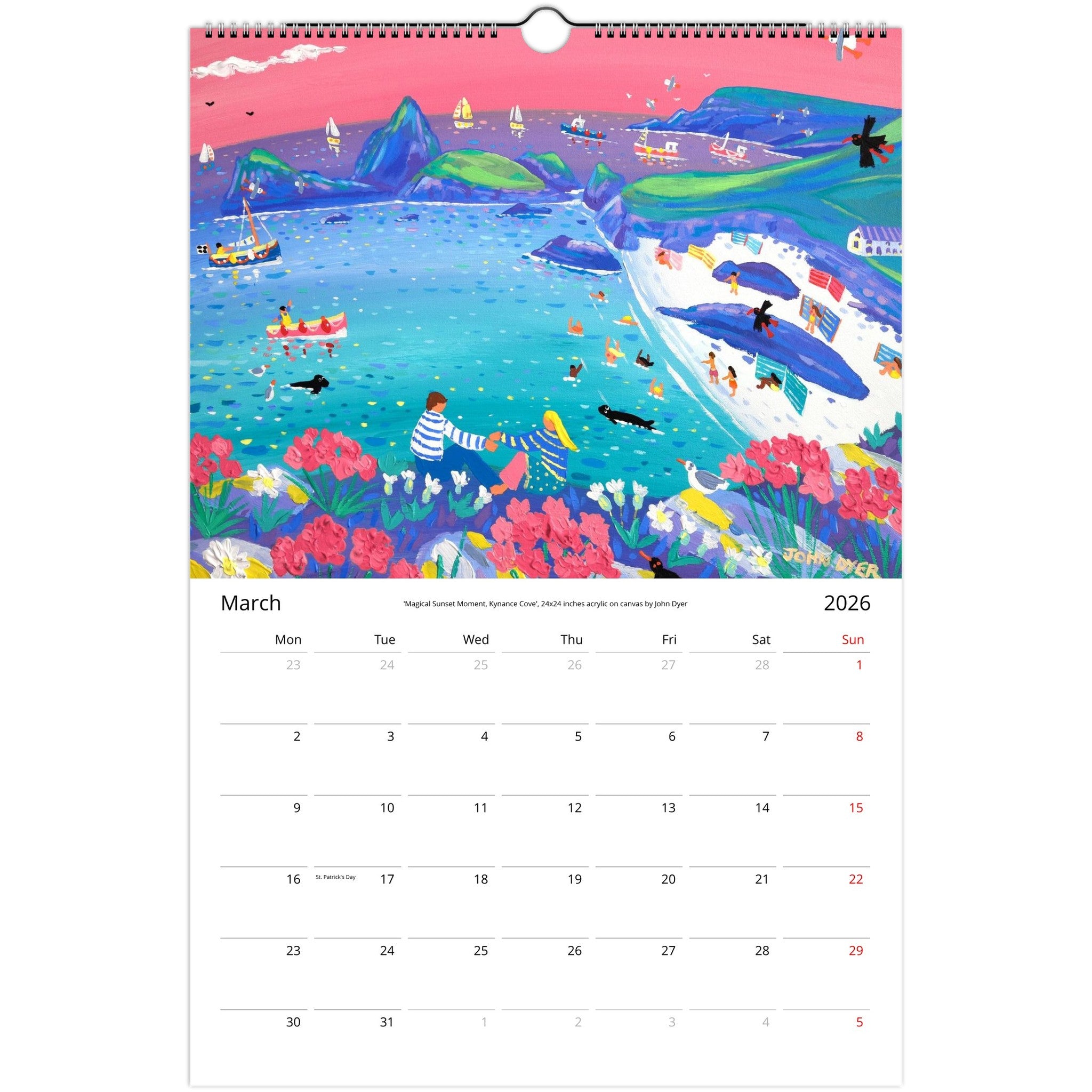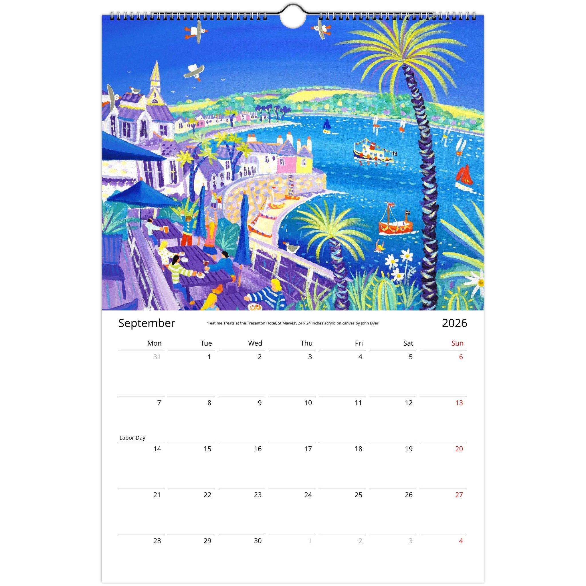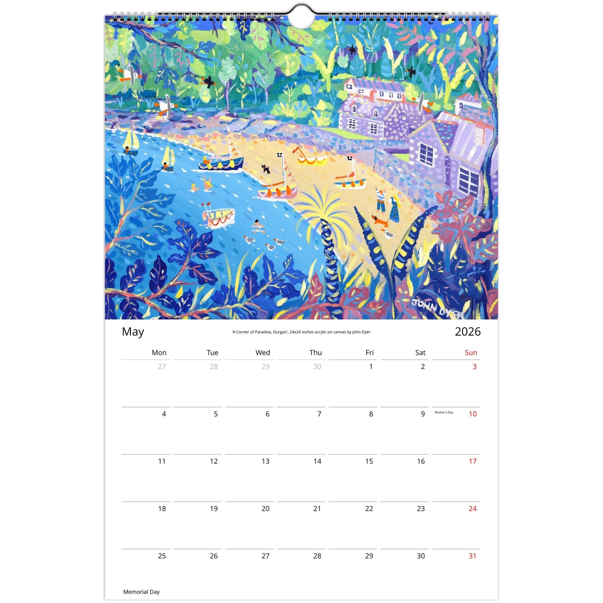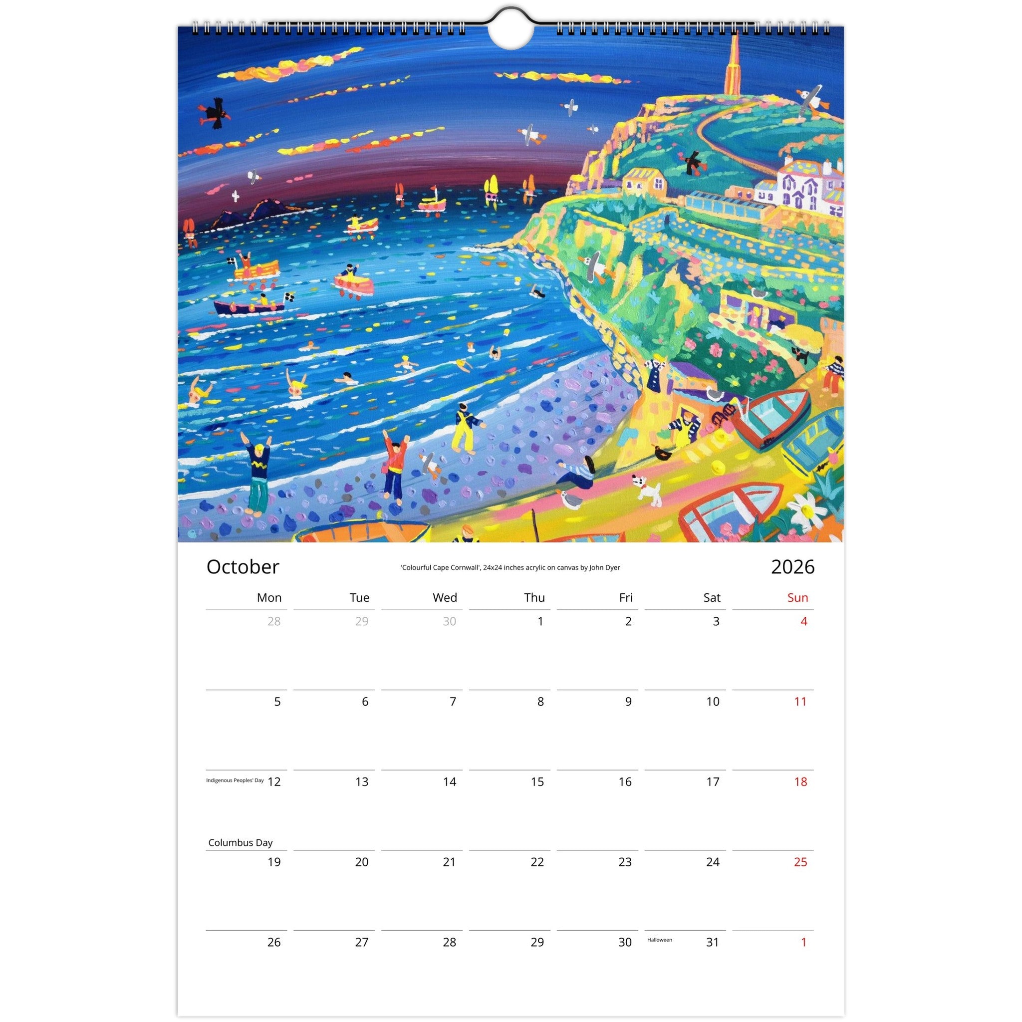 Celebrate the colour and joy of Cornwall and the art of John Dyer throughout 2026 with this beautifully produced wall calendar featuring twelve vibrant paintings by acclaimed Cornish artist John Dyer. From sunlit beaches and tropical gardens to moonlit harbours and coastal villages, each month captures the spirit and landscape of Cornwall through Dyer’s distinctive eye for light, colour, and storytelling.
