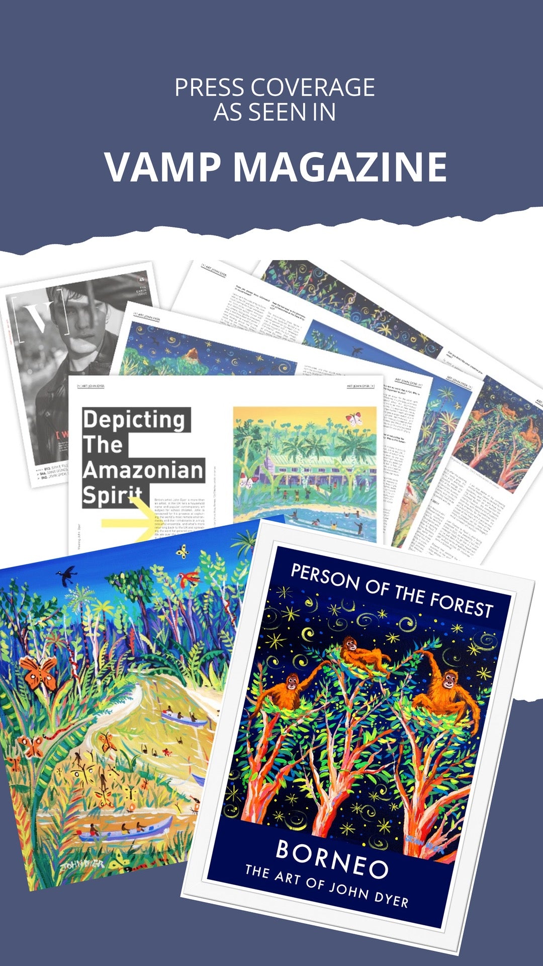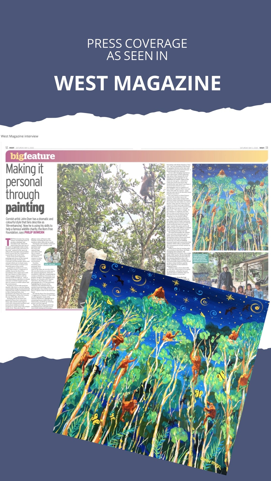 West magazine on artist John Dyer painting in Borneo and the Amazon rainforest with orangutans and tribes