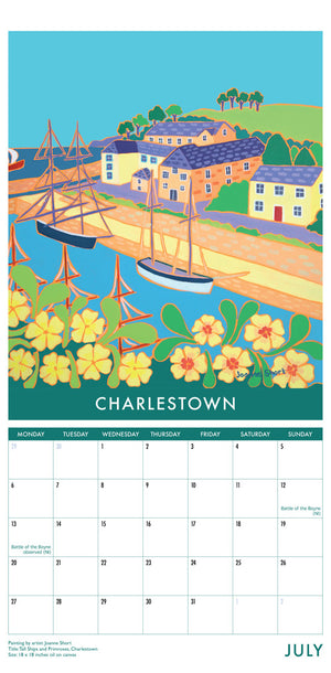 (160mm x 325mmwall art calendar for 2025 featuring 12 paintings from Cornwall's best-loved artists, John Dyer and Joanne Short. The locations of the paintings featured in the calendar are Port Isaac, St Ives, Trewidden Garden, Wheal Coats St Agnes, Newquay, Fowey, Charlestown, Bude, Looe, St Just in Roseland and Truro.