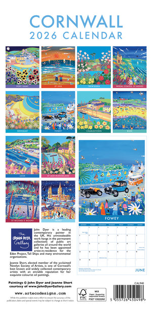 Calendar 2026. Cornwall Art Calendar by Cornish Artists John Dyer and Joanne Short. UK Dates & Holidays