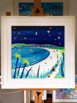 John Dyer Painting. Moonlit Cycle Ride, Pentle Bay, Tresco