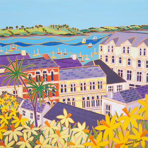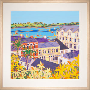 The view across the seaside Cornish town of Falmouth has inspired artist Joanne Short to create this gorgeous new oil painting of this famous coastal town. Spring daffodils fill the foreground of the painting and the stunning architecture and colours of the buildings draw our eye out across the rooftops to the sea and Carrick Roads beyond.
